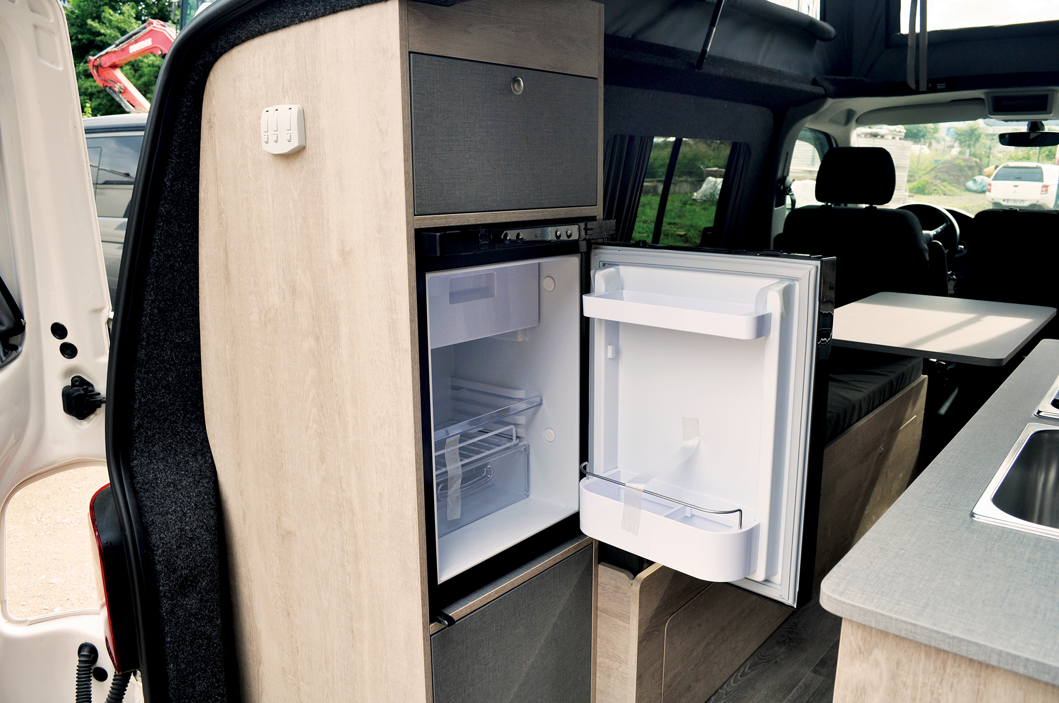 >> Meuble colonne à l’arrière comprenant un frigo de 50 l.